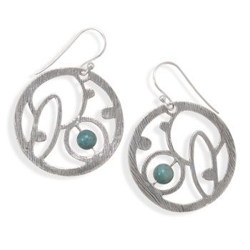Oxidized, textured sterling silver french wire earrings with a turquoise bead.