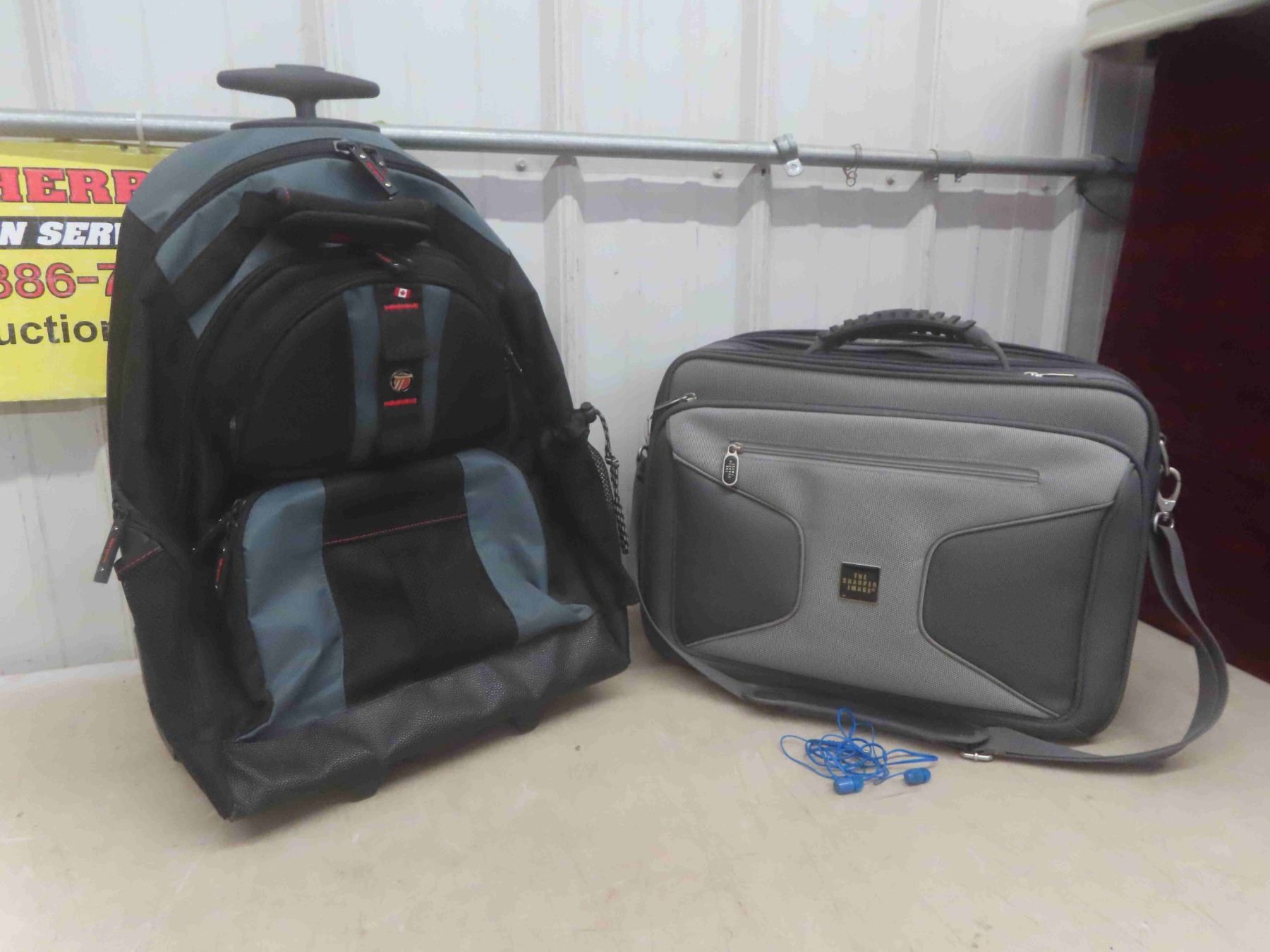 Tfargus backpack w/ Pullbar & rolls & The Sharper Image Laptop bag.