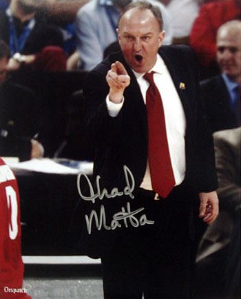 Thad Matta is the current head coach of the Ohio State Buckeyes men's basketball team. He was hired as the 13th head coach in Ohio State history on July 7, 2004 after the school had fired previous coach Jim O'Brien. He has posted 20 or more wins per season in all 14 seasons he has been a head coach. On March 12, 2015, he set a school record for victories, winning his 298th game for OSU after defeating Minnesota in the Big Ten Tournament. Matta has led the Buckeyes to five Big Ten Conference regular season championships, four Big Ten Tournament titles (2007, 2010, 2011 and 2013), two Final Four appearances (2007 - where the Buckeyes played in the National Championship game - and 2012), and the 2008 NIT Championship. Thad Matta has hand signed this Ohio State Buckeyes Coaching 8x10 Photo. Certificate of Authenticity from Athlon Sports Collectibles.