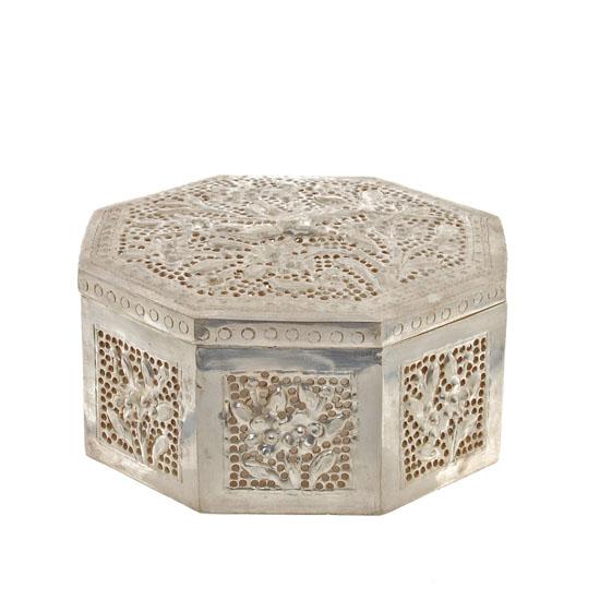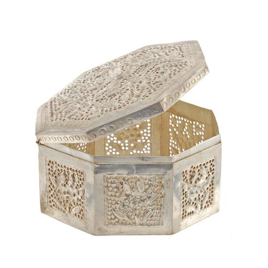 Excellent hinged and hand-decorated box, coin silver (80%) 251 grams, 4.25"; $885 retail