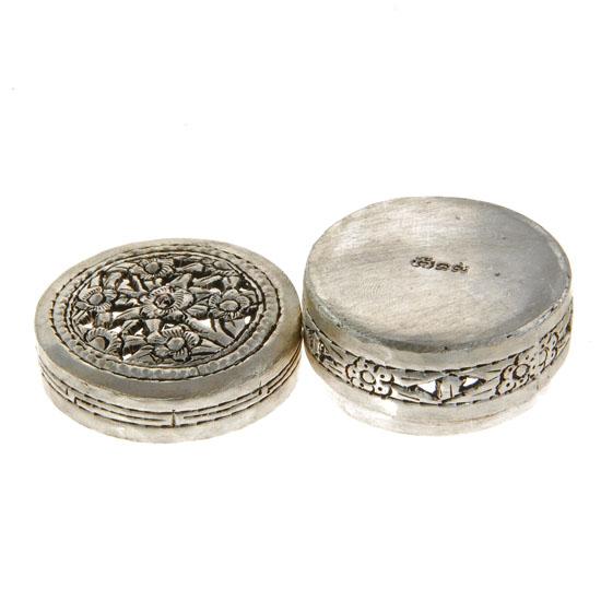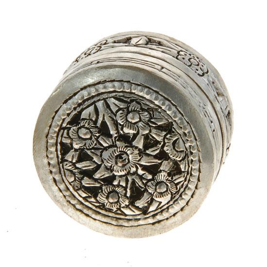 Nice round decorated box; coin silver (80%) 42 grams; 1.5"