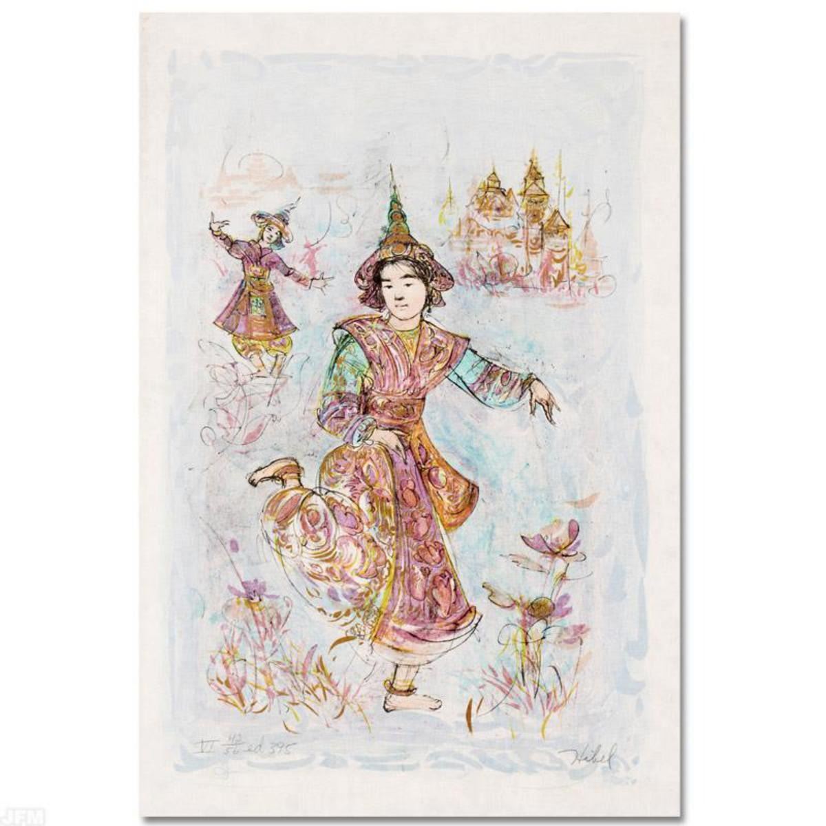 "Thai Dancers" Limited Edition Lithograph by Edna Hibel, Numbered and Hand Signed with Certificate o