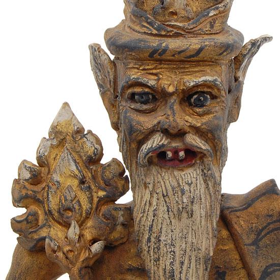 Excellent hand crafted piece made entirely of a spiec paste; image of Recee a Thai mythical character just short of monk hood that lived in the jungle and ate only a vegetarian diet; 12"