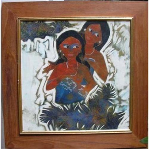 Gorgeous Thai Painting. The Painting is 13" x 13" and is framed in a 2 1/2" wide Teakwood frame.