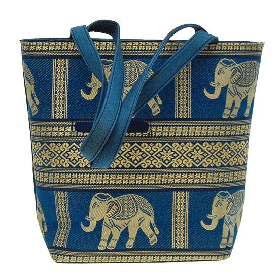 Excellent hand crafted piece using heavy Thai silk; heavy snap closes main compartment with zippered compartment inside; 17" with strap; $105 retail