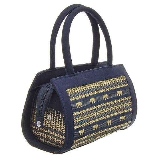 Excellent hand crafted piece using heavy Thai silk; zippered main compartment with smaller zippered compartment inside; 12" with strap; $105 retail