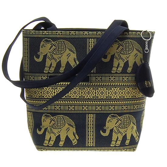 Excellent hand crafted piece using heavy Thai silk; zippered main compartment with small zippered compartment inside; cell compartment outside; 21" with strap; key chain witn small zippered compartment included; $105 retail