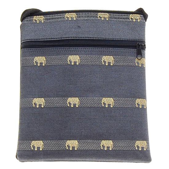 Excellent hand crafted piece using heavy Thai silk; zippered main compartment with 3 smaller zippered compartments outside; 9' body with shoulder strap; $85 retail