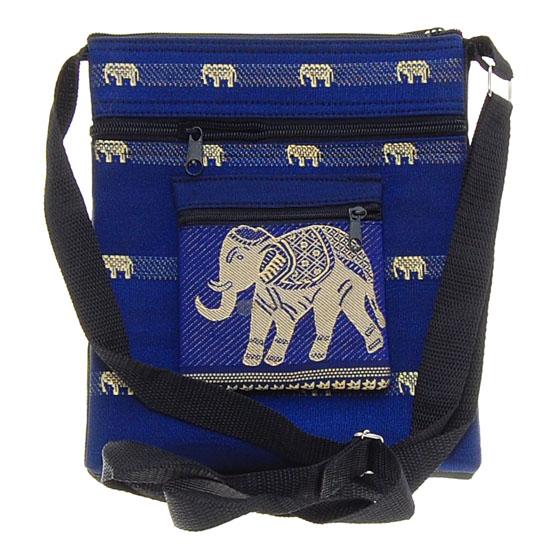 Excellent hand crafted piece using heavy Thai silk; zippered main compartment with 3 smaller zippered compartments outside; 9' body with shoulder strap; $85 retail