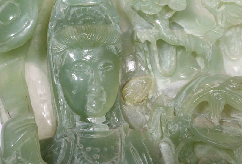 Thai Woman and Two Children, Jade Sculpture, (Nephrite)