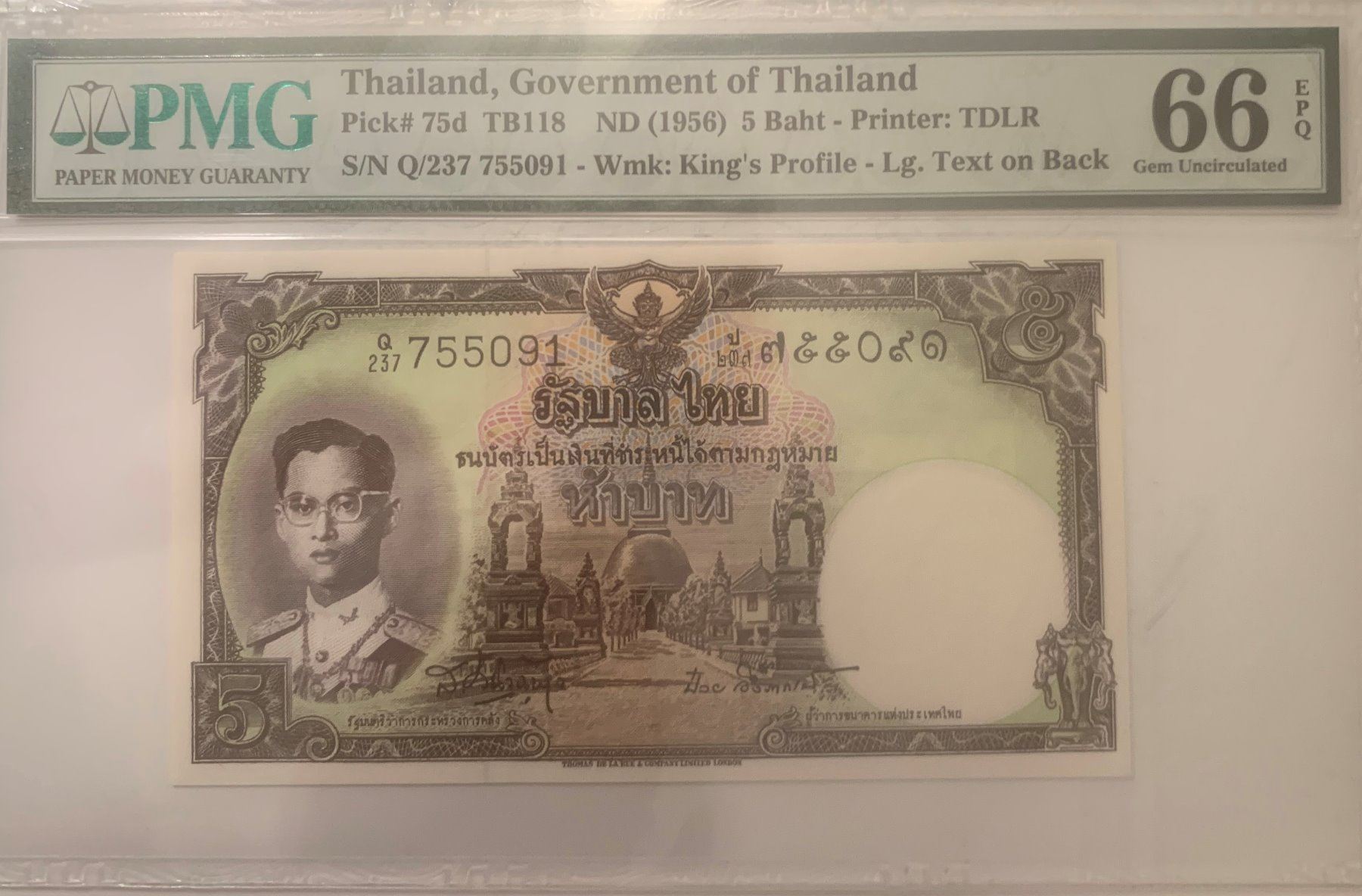 Thailand 5 Baht ND 1956 P 75 d GEM UNC PMG 66 EPQ