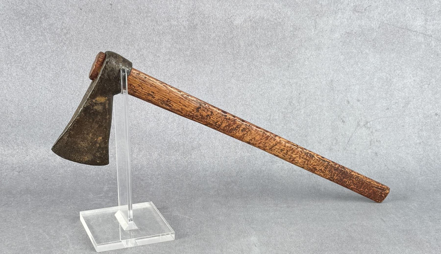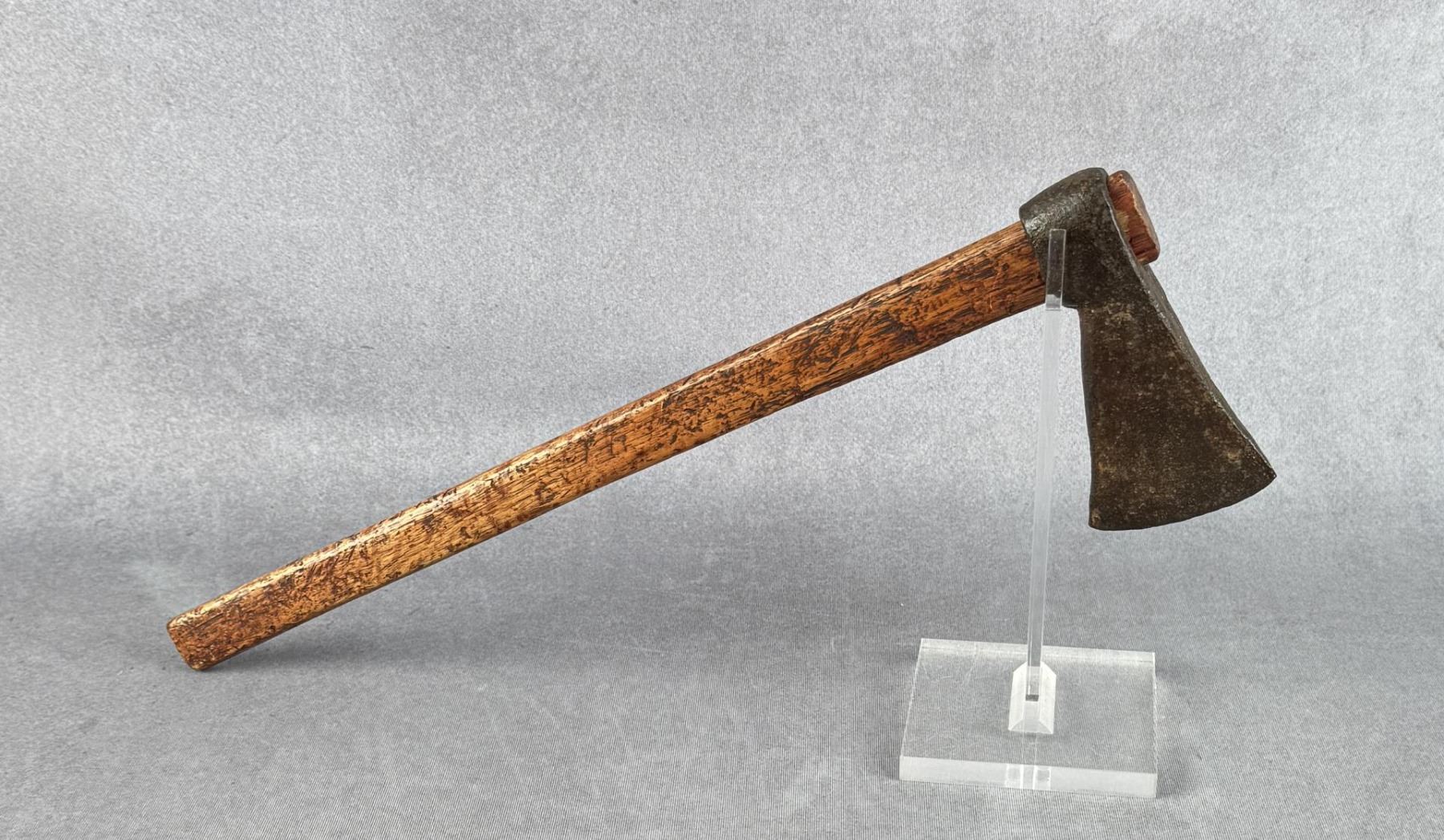 Squaw axe. 18" long. Thain White (1913-1999), Thain White was a Montana historian who focused on the history of western Montana, particularly the Flathead valley. The collection contains maps, artifacts, and documents concerning a variety of Montana historical topics.