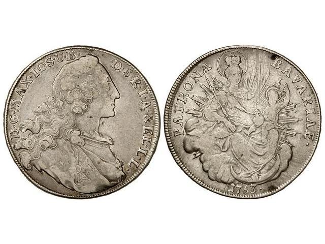 Thaler. 1763. MAXIMILIANO JOSÉ III. BAVIERA. AR. (Golpecitos y rayitas de ajuste en reverso). KM-234.1. MBC-.