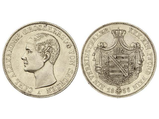 Thaler. 1858-A. SAXE-WEIMAR-EISENACH. AR. (Pequeños golpecitos). C-93. EBC-/EBC.