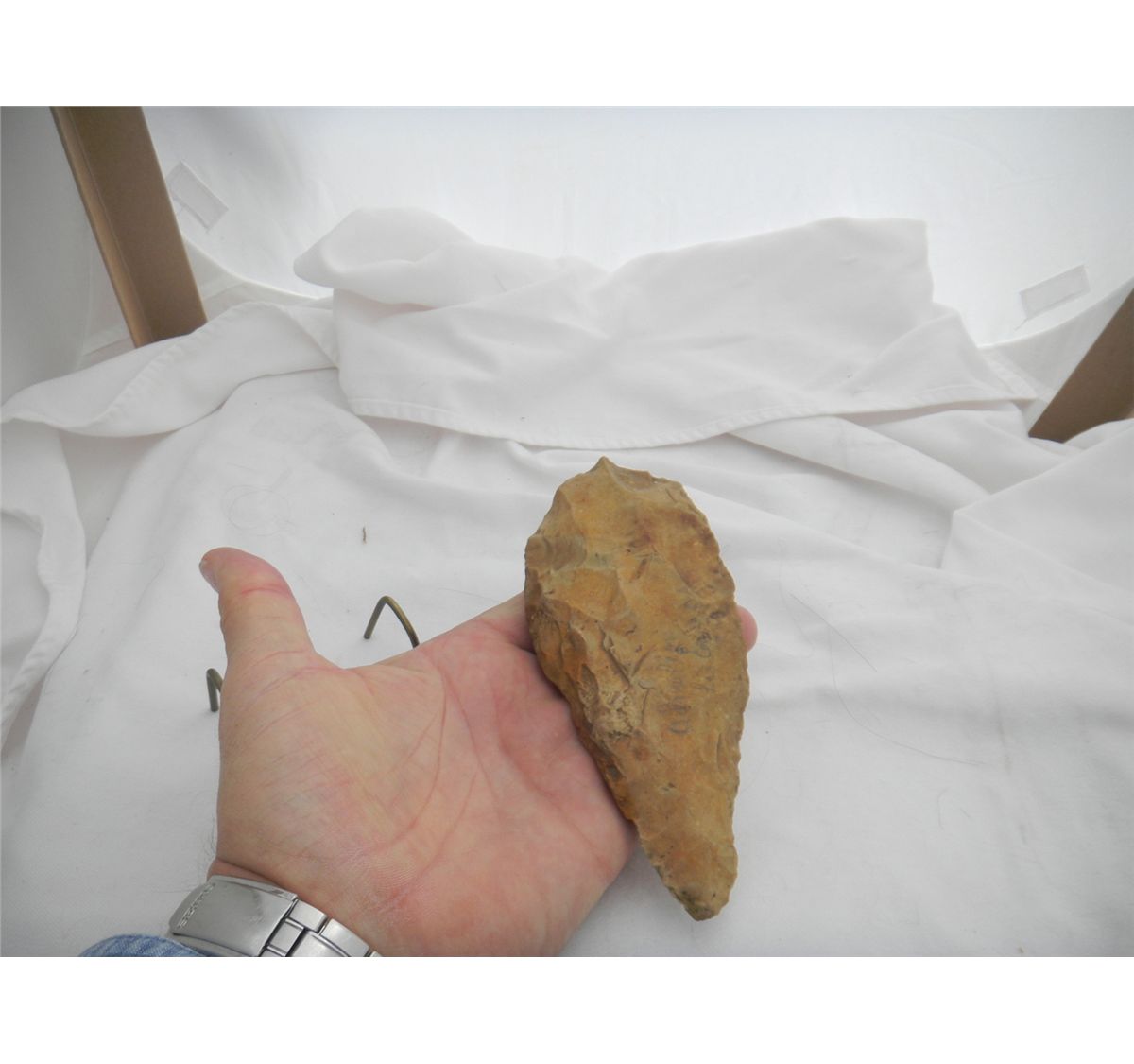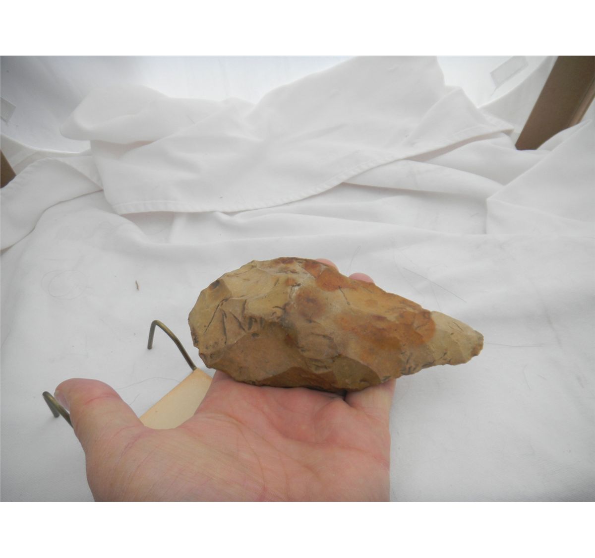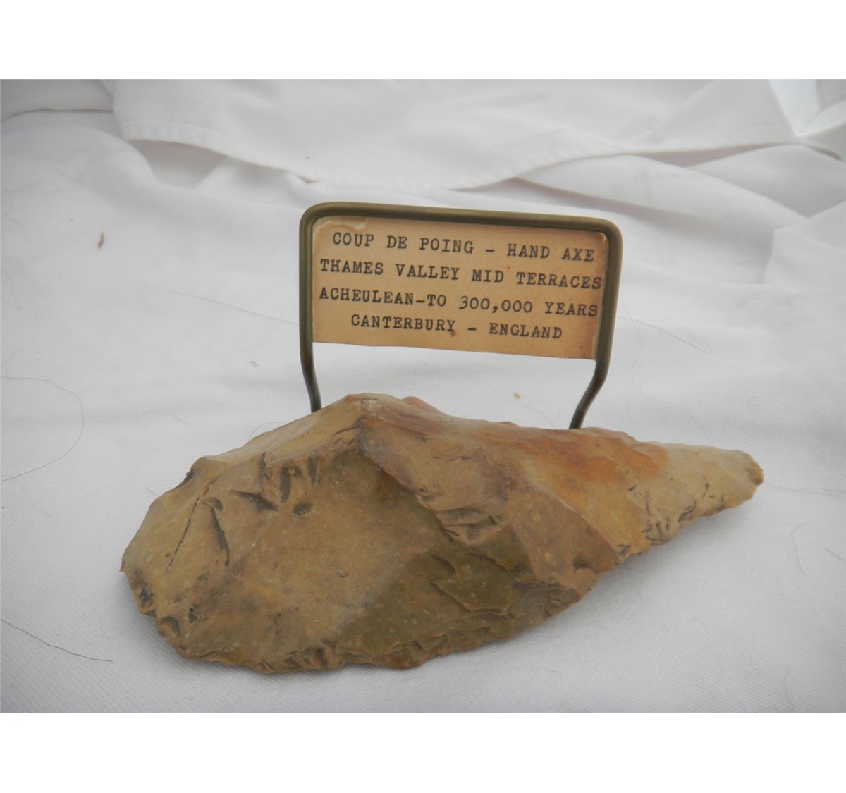 Hand Axe from England. This Hand Ax is from Thames Valley Mid Terraces Acheulean to 300,000 years old, Canterbury, England. Measures 6 x 3 x 2 inches. Condition as found. Shipping $18.00