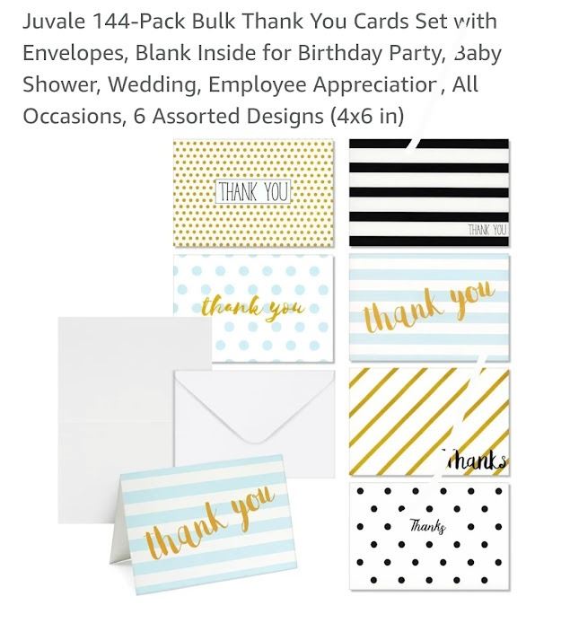 Juvale 144 pack bulk thank you card set with envelopes, blank inside for birthday party, baby shower, wedding, employee appreciation, all occasions, six assorted designs (4x6)