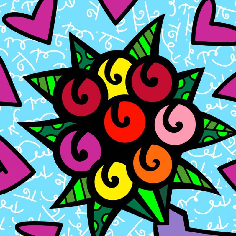 "Thank You" is a limited edition giclee on canvas by Romero Britto. The piece is numbered, hand signed by the artist, and comes with a Certificate of Authenticity. Measures approximately: 20" x 16".