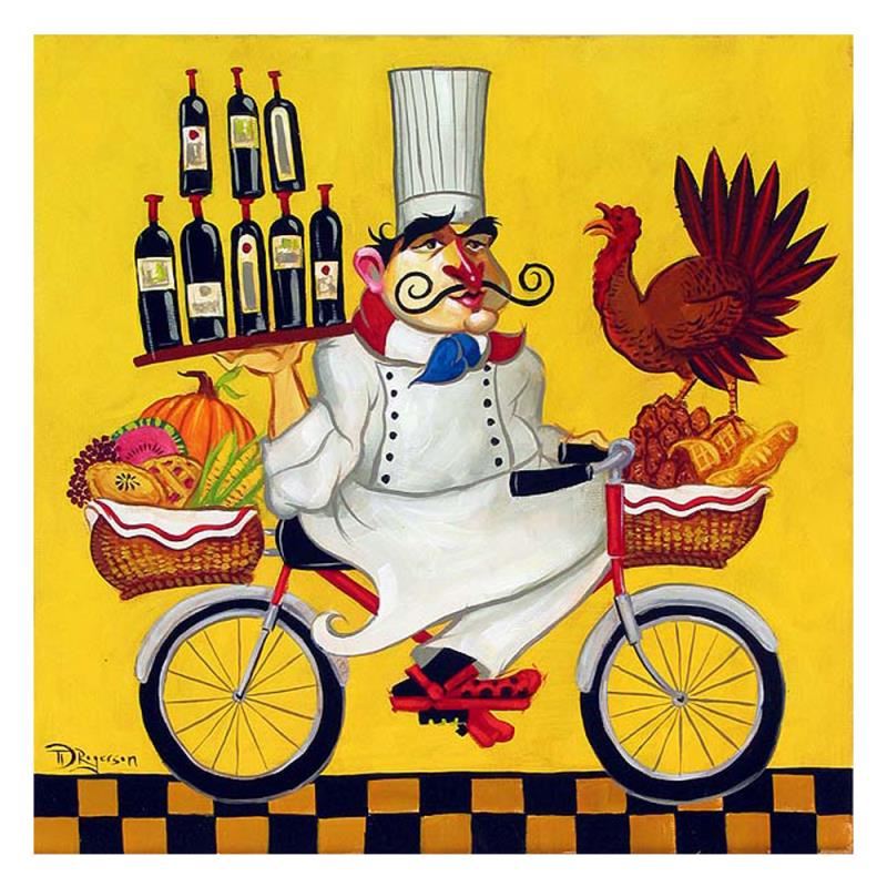 "Thankful Chef" is a limited edition giclee on canvas, numbered and hand signed by Tim Rogerson. This piece has at least a 2" border and can be gallery wrapped or framed based on preference. Includes Certificate of Authenticity! Measures approx. 12" x 12" (image).
