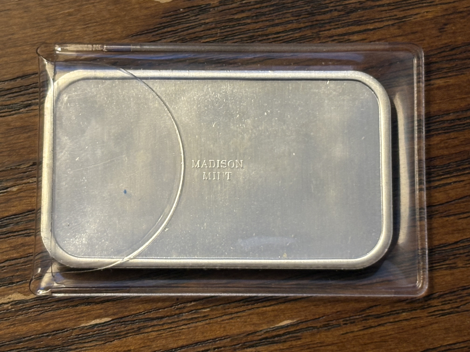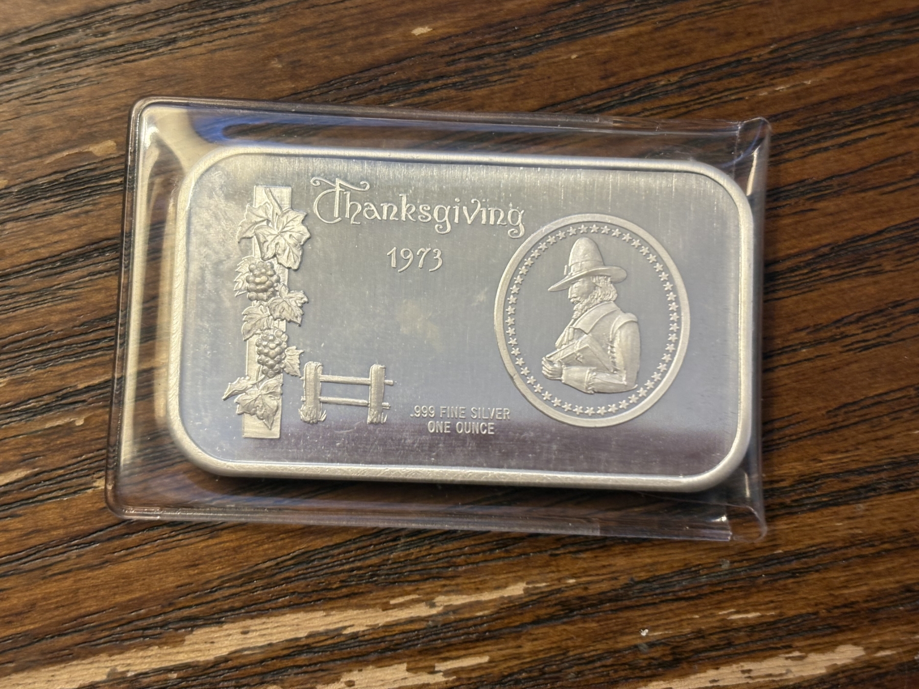 Thanksgiving 1973 1 Oz. Fine Silver Bar - Madison Mint - In Plastic Packaging