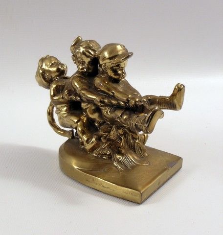 That 70's Show Children's Statue Prop - At first no one wanted to buy a comedy about a group of "regular" kids coming of age in the yawning 1970's, in, of all places Wisconsin! But eight seasons later, and a forever cult following proved them all wrong! This is an unusual "children's triptych" metal statue, used as a background set-decoration prop for the beloved series. (Approx. 6" x 5").