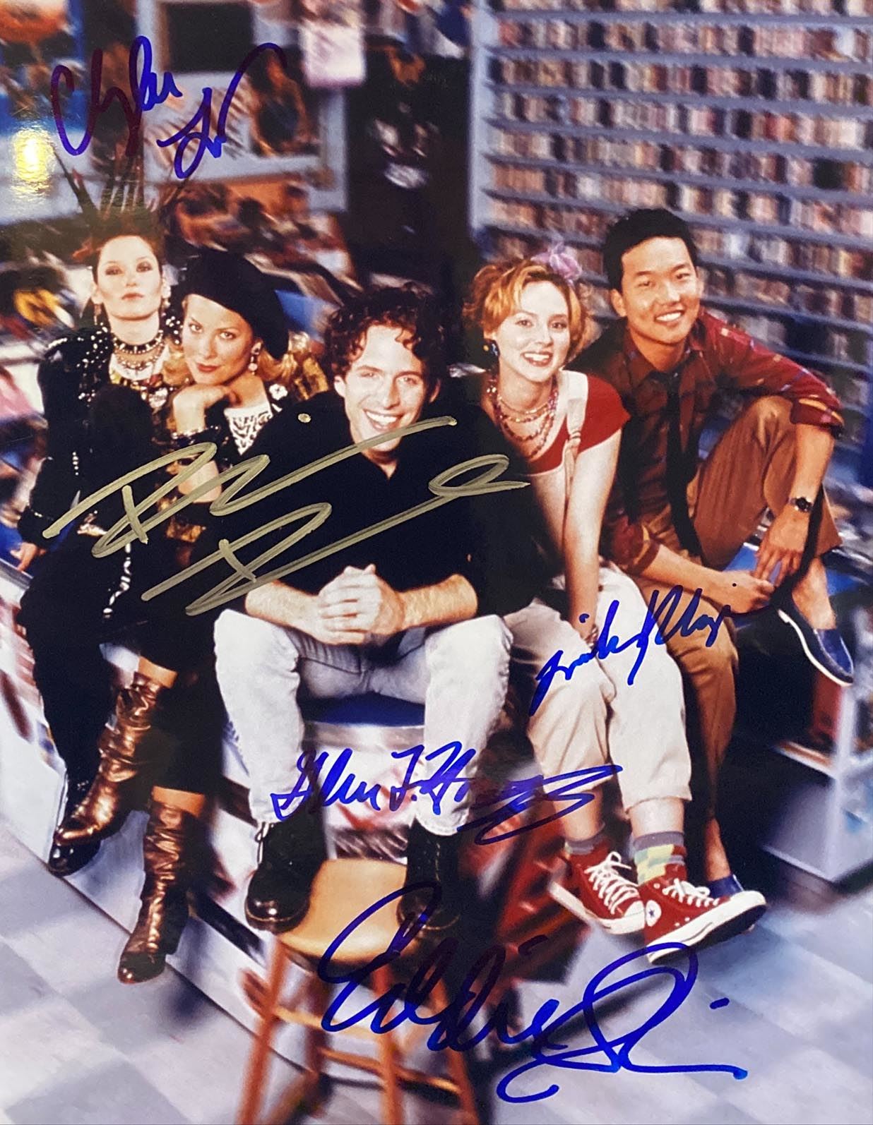 That '80s Show Cast Signed Photo Autographed by Chyler Leigh, Brittany Daniel, Glenn Howerton, Tinsley Grimes, and Eddie Shin. 8x10 inches