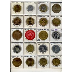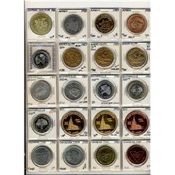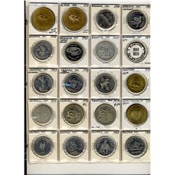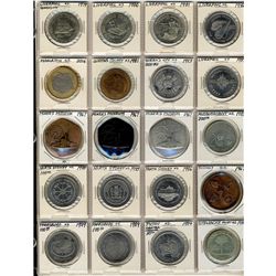 Trade Dollars; Lot includes 1986 JA Moisan (Ni), 1991 Grand-Mere (2, PO), 1984 Quebec (3, AN), 1992 Sorel (AN) & 1988 Valleyfield (PO, PB, AN). ...