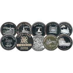 Trade Dollars; Lot of Silver issues from, 1985 Beauceville, 1990 Cap Chat, 1983 Rivière Du Loup, 1991 Saint Augustin, 1989 Matane, 1980 SNC, 19...