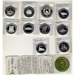 Trade Dollars; Lot of Silver issues from, 1984 Chicoutimi, 1985 JA Moisan, 1990 Montreal Hospital, 1989 Nedelec(2), 1984 Neuville, 1993 Notre-Dame-Du-