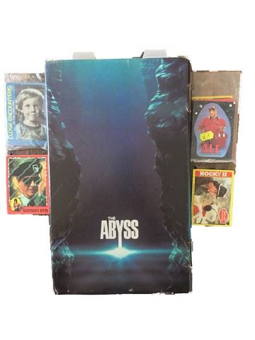 Collection of 1 press kit and collectors trading cards from various shows or movies ~25 from (1970's-90's). From 20th Century Fox "The Abyss"(1989) starring Ed Harris as Virgil, Mary Ekizabeth Mastrantonia as Dr Lindsay Brigman, and Michael Biehn as Lieutenant Hiram Coffey, includes 11 stills. Tading cards from such hit shows as "Alf" (1986) and ran for 4 seasons, starring Max Wright as Willie Tanner, Paul Fusco as alf, Andrea Elson as Lynn Tanner, Rocky II (1979), Rambo First Blood II (1985), and "Close Encounters of the Third Kind" (1977).