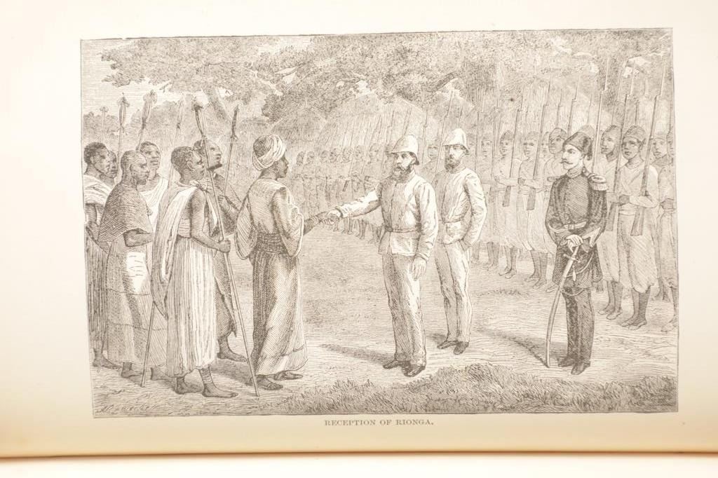 For your consideration is the First Edition of “The Achievements of Stanley”, by J.T Headley, 1878; was originally only available by subscription. Publishers Hubbard Bros, N.D. Thompson & Co, and A.L. Bancroft & Co, depending on where it was printed. The book details the adventures of Sir Henry Morton Stanley, who was a well-known Welsh journalist and explorer. Comprising all the late and really Great Achievements won in the Exploration of the vast unknown region of Equatorial Africa, "...chief among which are the finding of the lost David Livingstone by Stanley, the Explorations of the Great Lakes, the Wonderful Experiences of Sir Samuel W. Baker, in his remarkable Expedition with a small army under royal authority to the Central Lake Region by way of the Nile; The Discoveries of Lieut. Cameron in his memorable Overland Journey across the Entire Continent from east to west; and the crowning triumph of all, won by the daring and intrepid Stanley, in facing a Thousand Perils by Savages, Cataracts, Disease, Wild Beasts and Starvation, but by an almost superhuman Heroism, forcing his way down the dark river 2500 miles, and solving the Great Mystery by proving Livingstone's Lualaba verily the headwaters of the mighty CONGO And thus opening a grand highway from the west coast to the heart and treasures of one of the most populous and productive continents of the globe." The book shows fifty wonderful illustrations depicting the travels. This green cloth bound gold gilt stamped hardcover is in fair condition, scuffing and moisture damage observed on cover. Intact pages have age tanning, foxing and moisture stains. Measures 6"W x 9"L x 2"D, weight 2lb, 14oz.