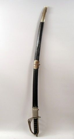 A dramatic antique battle sword and sheath used as a set-decoration prop in the 1991 remake of the classic TV series "The Addams Family" (Approx. 37" long). Oversized item.