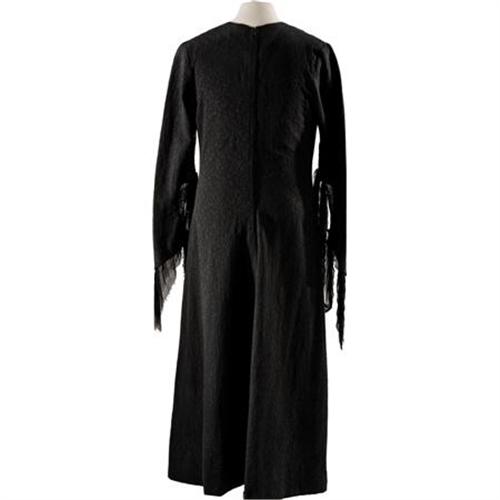 <B>"The Addams Family" Christina Ricci Screen-Worn Dress.</B></I> Wednesday Addams' black gothic dress rendered in the style of her mother Morticia's, worn by Christina Ricci in the role that established her as a credible actress in <I>The Addams Family</B></I> (1991). Also included is infant Pubert Addams' crypt gray knitted baby jumper featuring a large, embroidered spider, as worn by infant actors Kaitlyn & Kristen Hooper in <I>Addams Family Values</B></I> (1993). <I>Authenticated by the world's foremost curators of television artifacts, The Comisar Collection of Beverly Hills.</B></I><BR><BR><b>Shipping:</b> Clothing, Costumes & Jerseys (<a target="_blank" href="http://www.heritageauctions.com/common/shipping.php">view shipping information</a>)