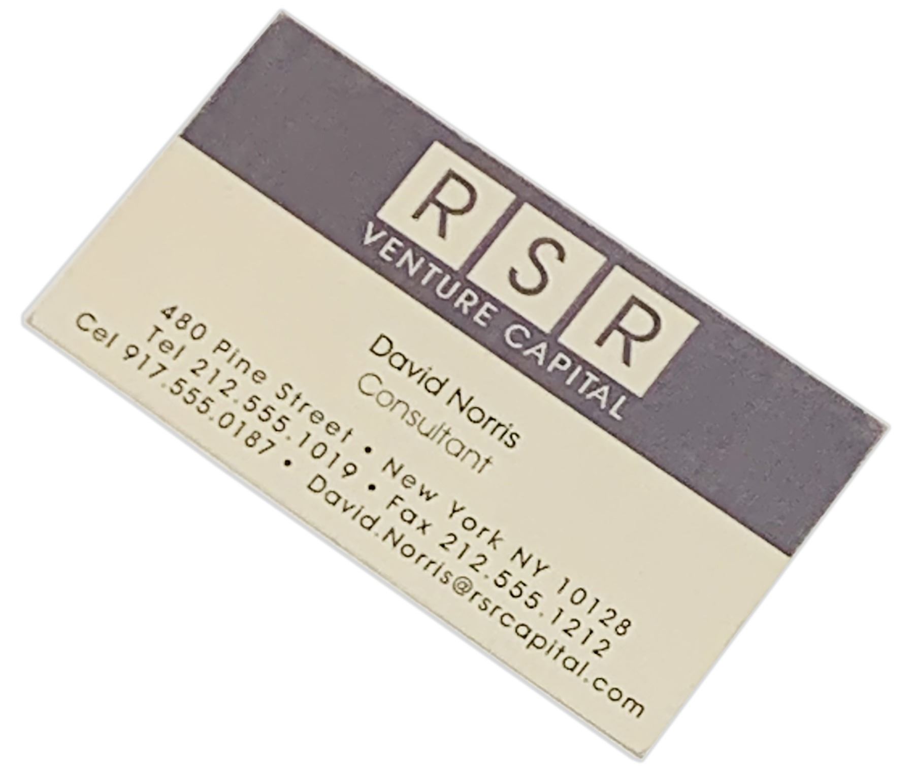 Original RSR business card for "David Norris", played by Matt Damon in the romantic thriller film 'The Adjustment Bureau' (2011), where the affair between a politician and a contemporary dancer is affected by mysterious forces keeping the lovers apart. Starring Matt Damon, Emily Blunt, Anthony Mackie, John Slattery and Terence Stamp.