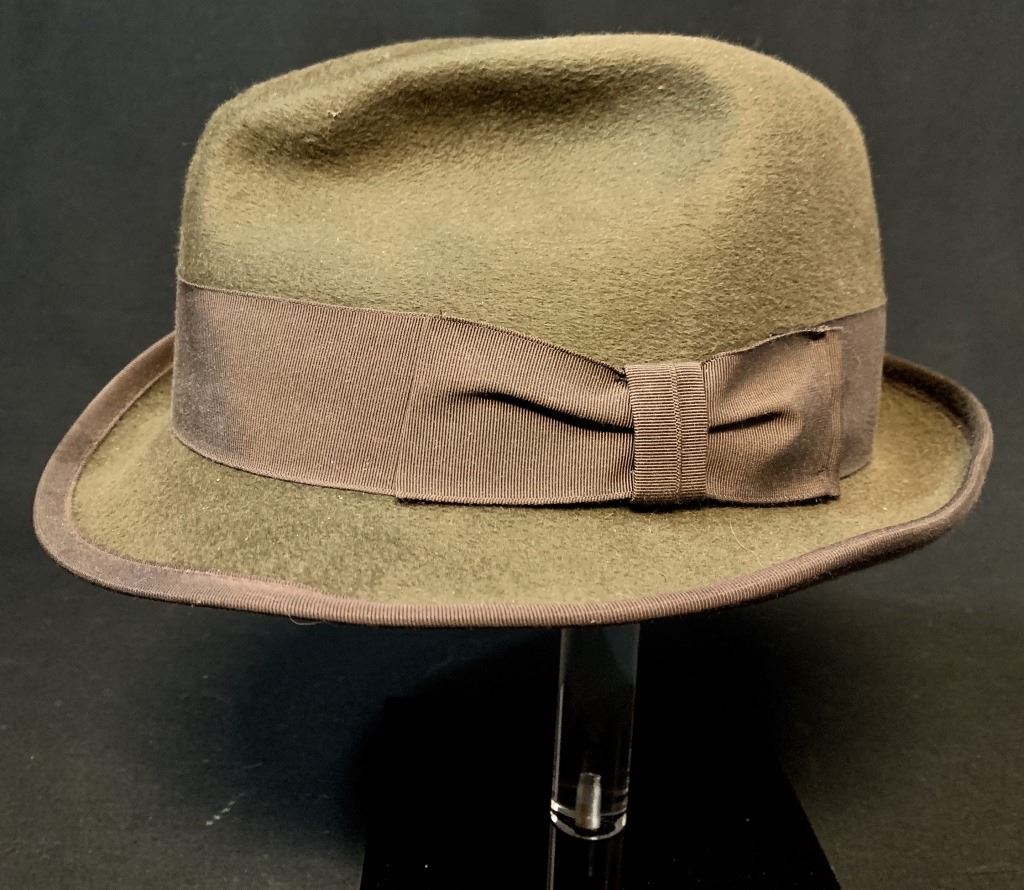 Original screen used hat worn by a main character in the romantic thriller film "The Adjustment Bureau" (2011). where, the affair between a politician and a contemporary dancer is affected by mysterious forces keeping the lovers apart. Starring Matt Damon, Emily Blunt, Anthony Mackie, John Slattery and Terence Stamp.