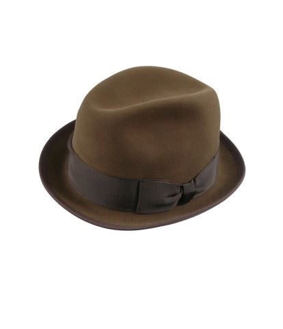 Brown felt with ribbon around the brim 'J.J. Hat Center Inc. ' fedora hat.