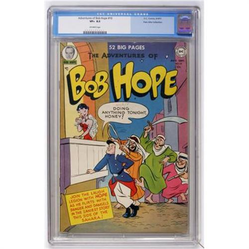 <B>The Adventures of Bob Hope #10 Palo Alto Collection pedigree (DC, 1951) CGC VF+ 8.5 Off-white pages.</B></I> Overstreet 2007 VF 8.0 value = $250; VF/NM 9.0 value = $400. CGC census 6/07: 2 in 8.5, 3 higher.<BR><BR><b>Shipping:</b> Comics - Slabbed (certified) (<a target="_blank" href="http://www.heritageauctions.com/common/shipping.php">view shipping information</a>)