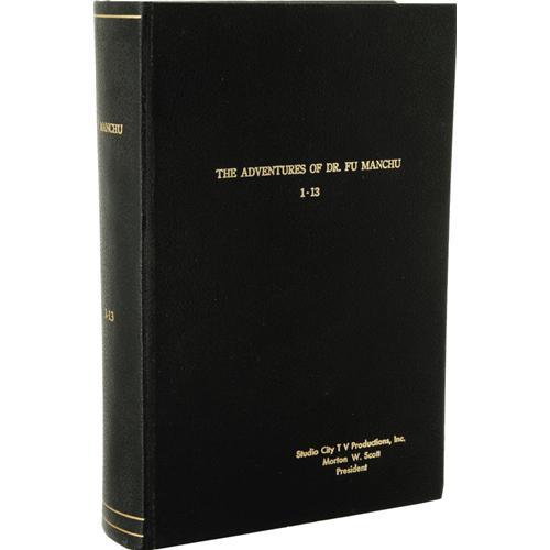 <B>"The Adventures of Fu Manchu" Bound Scripts.</B></I> Based on Sax Rohmer's mind-bending novels, the short lived 1956 television series <I>The Adventures of Fu Manchu</B></I> brought the fiendish mastermind to small screens, but its repetitious formula and campy plots were just a tad ahead of its time, and it was cancelled after 13 episodes. Featured are archive copies of the revised shooting scripts for each episode bound together in a single hardcover volume. In Excellent condition with very light wear and discoloration to the pages.