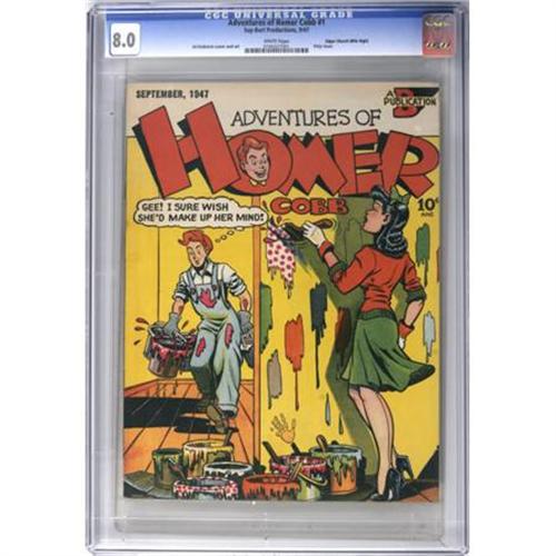 <B>The Adventures of Homer Cobb #1 Mile High pedigree (Say-Bart Productions, 1947) CGC VF 8.0 White pages.</B></I> The only issue of the title. This book is considered "scarce" according to Overstreet. Al Feldstein cover and art. Overstreet 2007 VF 8.0 value = $180. CGC census 6/07: 1 in 8.0, none higher.<BR><BR><b>Shipping:</b> Comics - Slabbed (certified) (<a target="_blank" href="http://www.heritageauctions.com/common/shipping.php">view shipping information</a>)