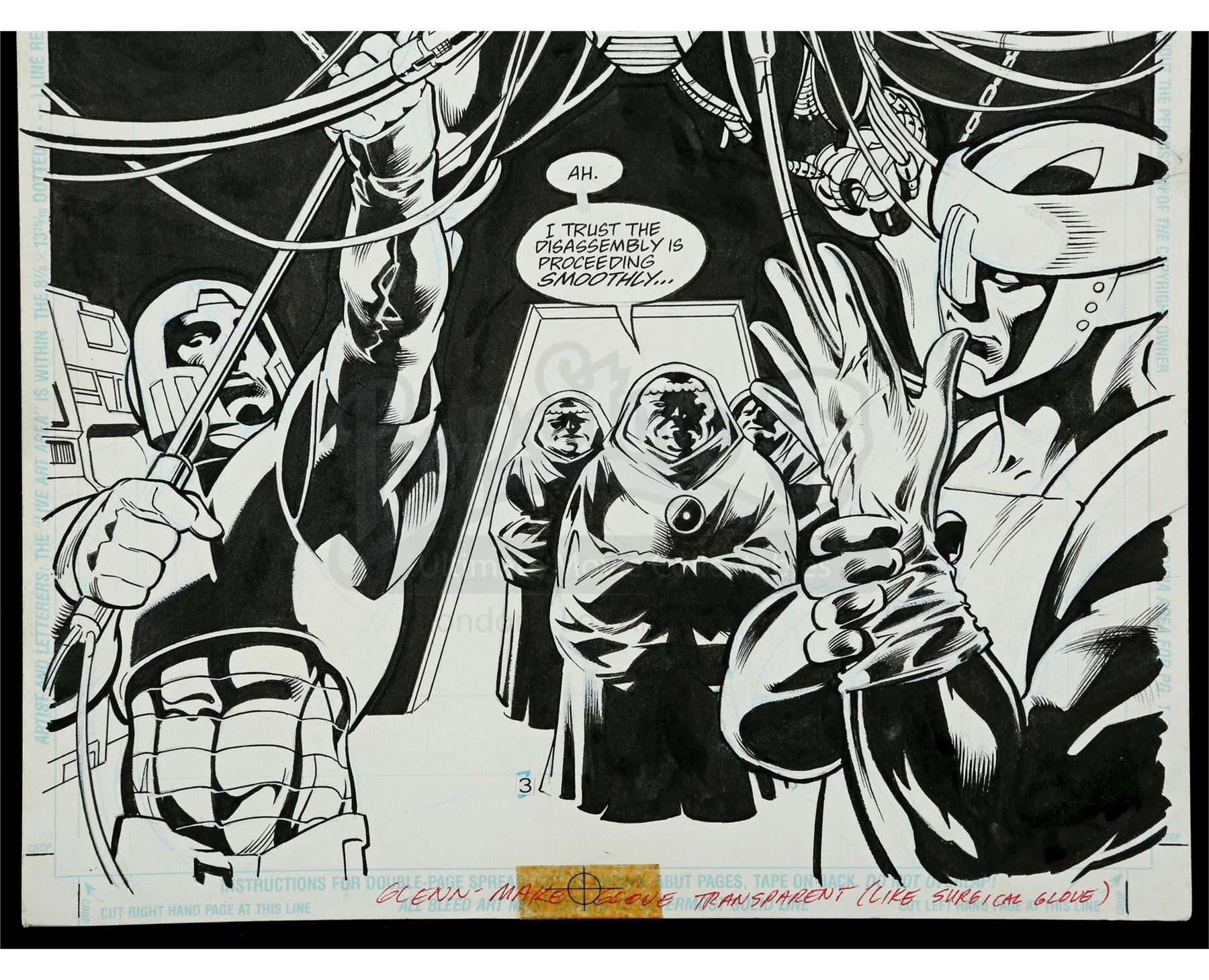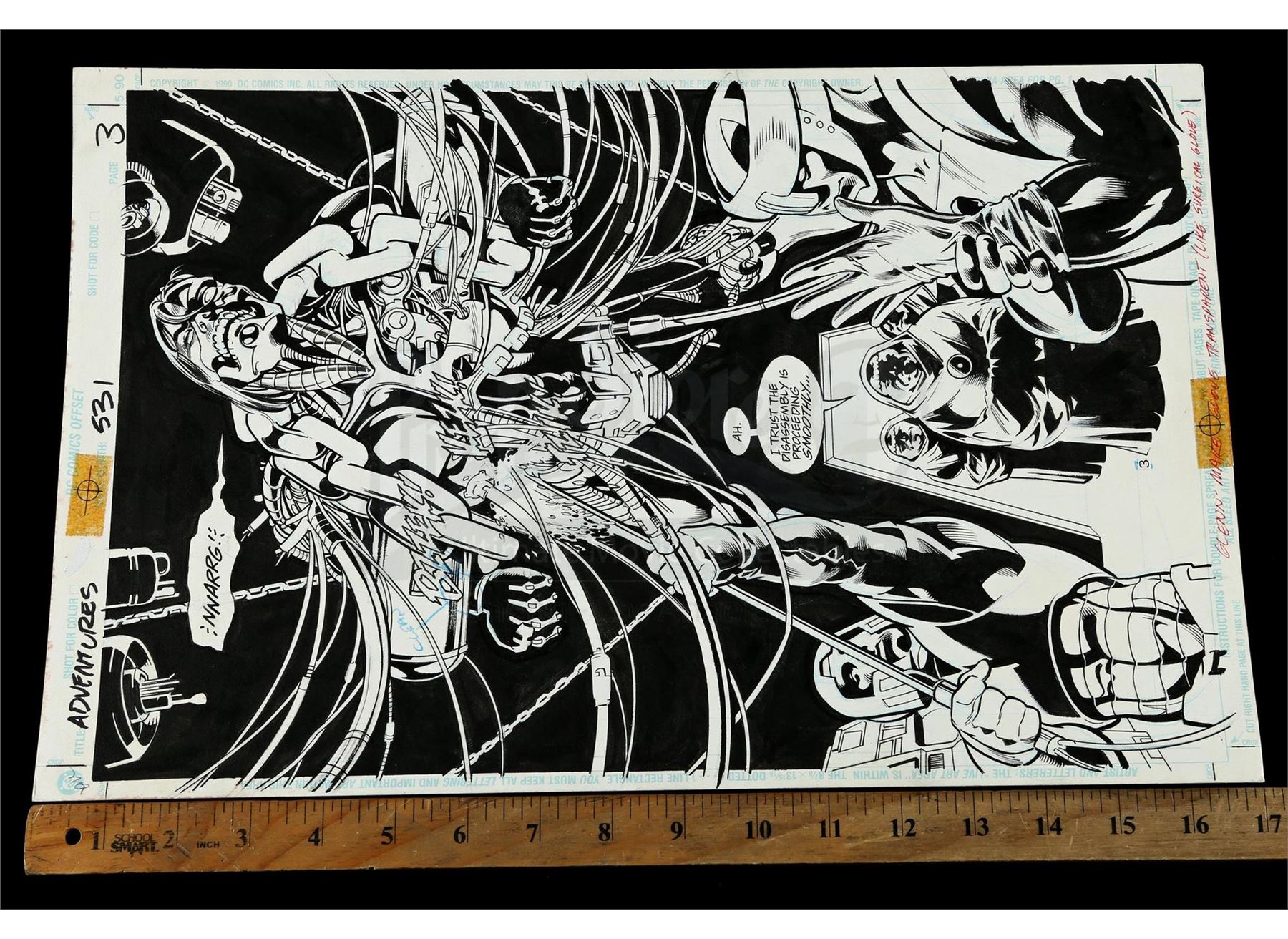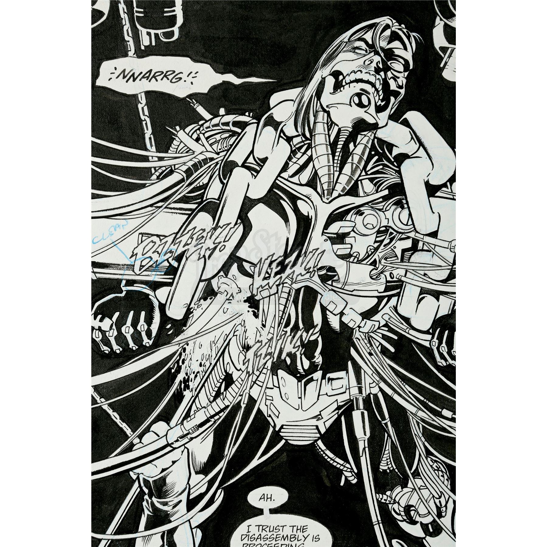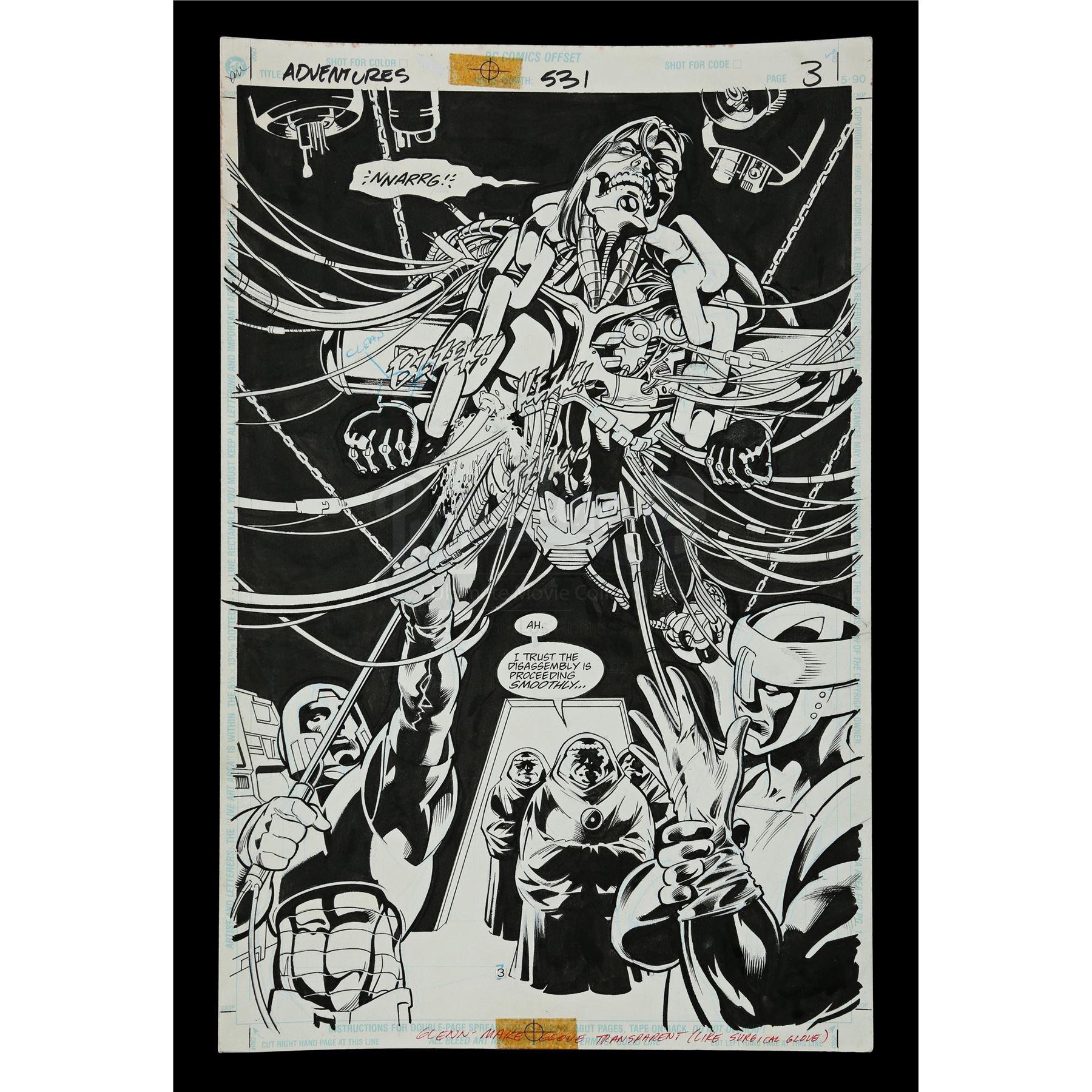 Stuart Immonen (Penciler), Jose Marzan Jr. (Inker)DC Comics, January 1996The Tribunal tortures The Cyborg. Features handwritten notations.Condition:Good; some wear along the edges.Dimensions: 17" x 11" x 1" (42.5cm x 27.5cm x 2.5cm)$400-600