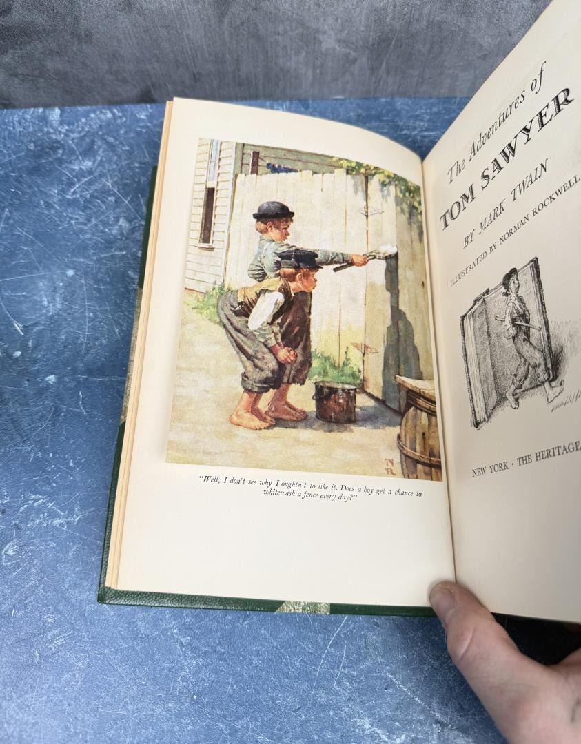 Leather Bound. Mark Twain 1936. Illustrated by Norman Rockwell. The Heritage Press. Bound by Whitman Bennett