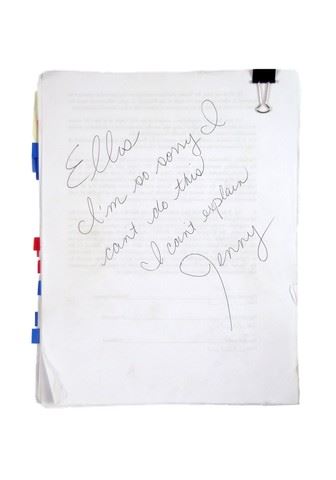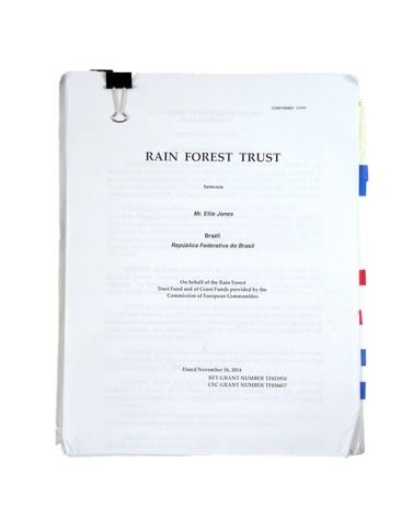 From the production company who brought you the never aging romantic tale Age Of Adaline is Ellis Jones' (Michiel Huisman) screen used, hero, 'Rain Forest Trust' paperwork with a note from Adaline Bowman (Blake Lively) as Jennifer Larson. This measures approximately 11" x 8 1/2".