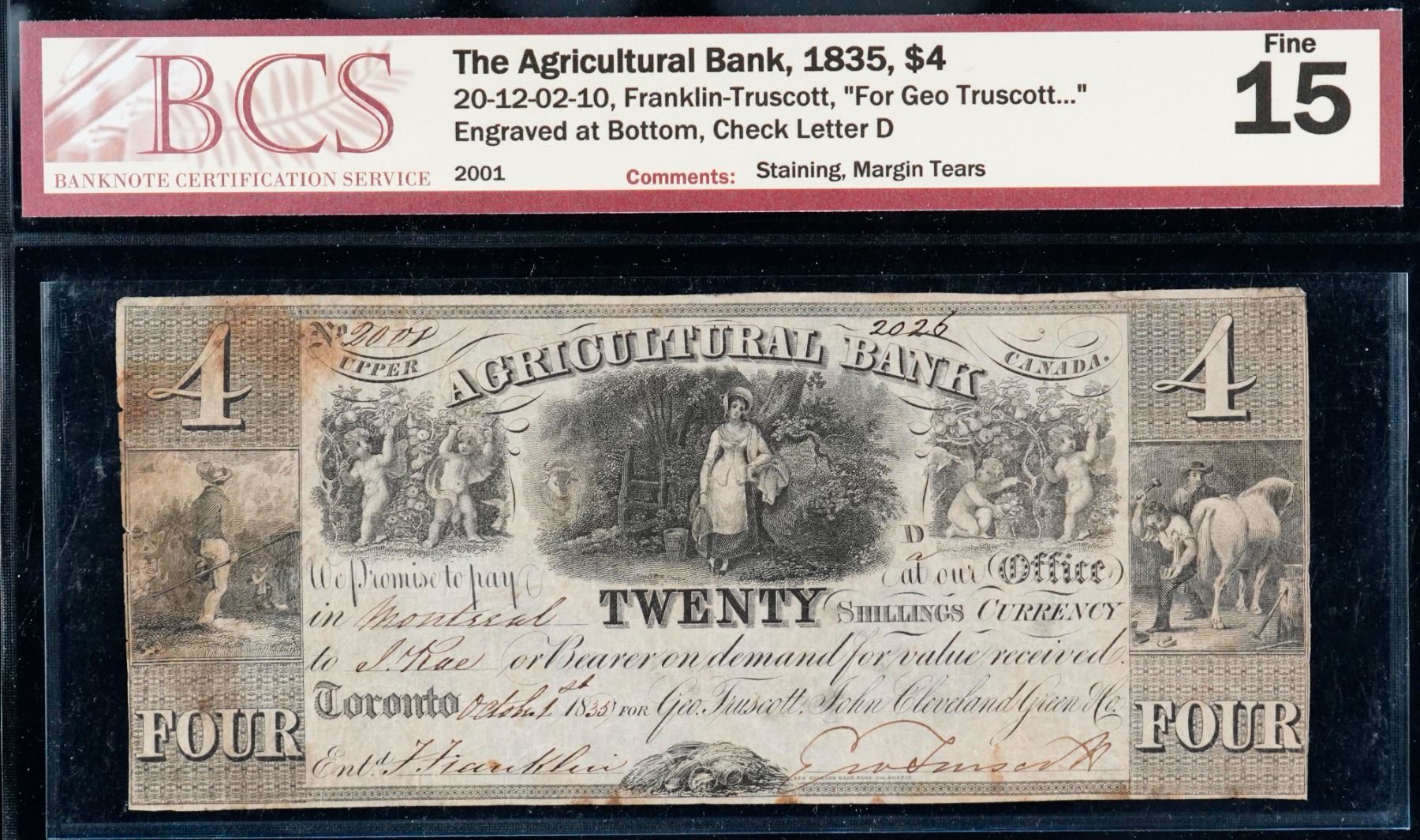 The Agricultural Bank 1835 $4 #2001 CH-20-12-02-10, BCS Choice Fine-15.