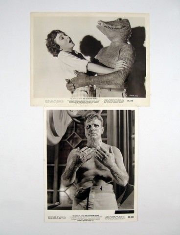 The Alligator People Lobby Cards -The grandfather to "Swamp Thing" was the Beverly Garland, Lon Chaney, Jr. Sci-Fi thriller, "The Alligator People" (1957) in which a failed medical treatment (yes, in a swampy Southern town) turns people in mutant alligators. These are two original B&W lobby cards from the production. (Approx. 8" x 10" each).