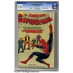 <B>The Amazing Spider-Man #10 (Marvel, 1964) CGC FN/VF 7.0 Off-white pages.</B></I> This issue marked the first appearance of Big Man and the Enforcers (to name names, that's the Ox, Fancy Dan, and Montana). The cover and art are by Steve Ditko. Overstreet 2004 FN 6.0 value = $300; VF 8.0 value = $850. CGC census 12/04: 39 in 7.0, 161 higher.
