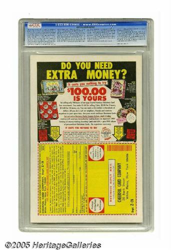 50. Auctioneer offers no opinion as to the validity of a grade assigned by any third-party grading service. Since we cannot examine C.G.A. encapsulated notes or Comics Guaranty Corporation (CGC) encapsulated comics, they are sold "as is" without our grading opinion, and may not be returned for any reason. Auctioneer shall not be liable for any patent or latent defect or controversy pertaining to or arising from any encapsulated collectible. In any such instance, purchaser's remedy, if any, shall be solely against the certification service certifying the collectible.