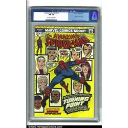 The Amazing Spider-Man #121 (Marvel, 1973). The death of Gwen Stacy was one of the pivotal moments in Spider-Man history, and this heart-wrenching issue remains a highly moving and very collectable artifact of an era when The Amazing Spider-Man "grew up" a little. The famous "who will die" cover highlights what has become one of the most important comics of the late Silver/early Bronze age. A stunner that is still discussed in fan circles to this very day, this is a near-perfect copy of that legendary issue. CGC NM 9.4 Off-white pages. Overstreet 2001 NM 9.4 value = $150.  Important notice: We expect to be auctioning lots at the rate of 200-250 per hour. Sometimes eBay Premier live bid software cannot keep up with that pace, so we strongly recommend that you place a realistic proxy bid now as insurance to avoid disappointment. Also please note that all Heritage/CAA lots purchased through eBay Premier carry a 20% Buyer's Premium.