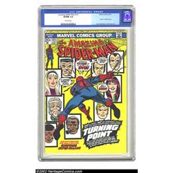 The Amazing Spider-Man #121 and #122 (Marvel, 1973) CGC VF/NM 9.0 Off-white pages. Here is a great little lot. Two very important, consecutive Spider-Man keys with the same high grade from CGC. Issue #121 features the death of Gwen Stacy, while issue #122 features the death of the Green Goblin. Both books have art by John Romita, Sr. and Gil Kane and they are truly gorgeous. Overstreet 2002 NM 9.4 value = $385. 2 C Comic Books Important notice: We expect to be auctioning lots at the rate of 200-250 per hour. Sometimes eBay Premier live bid software cannot keep up with that pace, so we strongly recommend that you place a realistic proxy bid now as insurance to avoid disappointment. Also please note that all Heritage/CAA lots purchased through eBay Premier carry a 20% Buyer's Premium. Please make sure you read the Terms and Conditions.