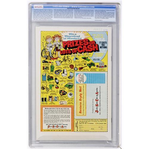<B>The Amazing Spider-Man #124 (Marvel, 1973) CGC NM+ 9.6 White pages.</B></I> This one's got it all: the first appearance of the Man-Wolf, and a perfect cover by John Romita Sr. We'll wager that this is one of the best-known comic stories of the 1970s because even kids who were too young to buy this off the stands got the heebie-jeebies from listening to the ubiquitous Power Records version in the ensuing years. All the more reason to secure such a nice copy of the original, and one with perfect page quality at that. Overstreet 2006 NM- 9.2 value = $80. CGC census 3/07: 19 in 9.6, 2 higher.<BR><BR><b>Shipping:</b> Comics - Slabbed (certified) (<a target="_blank" href="http://www.heritageauctions.com/common/shipping.php">view shipping information</a>)
