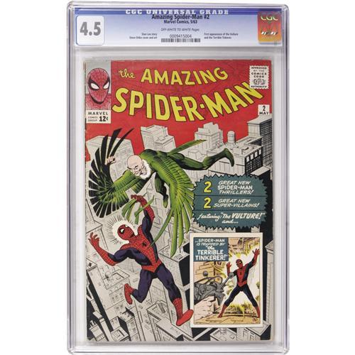 <B>The Amazing Spider-Man #2 (Marvel, 1963) CGC VG+ 4.5 Off-white to white pages.</B></I> Both the Vulture and the Terrible Tinkerer made their first appearances here. Steve Ditko drew the cover and the story. Overstreet 2006 VG 4.0 value = $634. CGC census 3/07: 37 in 4.5, 209 higher.<BR><BR><b>Shipping:</b> Comics - Slabbed (certified) (<a target="_blank" href="http://www.heritageauctions.com/common/shipping.php">view shipping information</a>)