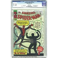 <B>The Amazing Spider-Man #3 (Marvel, 1963) CGC VF- 7.5 White pages.</B></I> The appearance of Doctor Octopus in the film <I>Spider-Man 2</B></I> will increase the value of this issue, Doc Ock's comic-book debut, so grab it while you can. This gem also sports a Human Torch appearance, Stan Lee story, and Steve Ditko art. A fabulous copy with numerous positive attributes, like deep cover colors and white pages. Overstreet 2004 VF 8.0 value = $1,881. <BR><BR><B>Important notice:</B> Heritage usually auctions material at the rate of 200-250 lots per hour. On some occasions eBay Live bid software or the Internet may not be able to keep up with the pace of the auction. We recommend placing a realistic absentee bid now as insurance to avoid disappointment. Occasionally the auctioneer may eliminate or reject an eBay Live bid, and the auctioneer may also reopen a lot after the close of the eBay live bidding (usually because we missed an audience bid), and may reject your bid even if it shows you as the winning bidder. By bidding via eBay Live, you agree that Heritage may award the lot to another bidder at its sole discretion under the circumstances described above or any other reasonable circumstances. Since eBay bids are not shown to us until we open the lot on the floor, we treat those bids just like floor bids. In most cases the floor responds before the eBay bid is presented to us, due to Internet lag time, so for consistency we have made it a policy that floor bids are always considered first over tie eBay live bids. Also please note that all Heritage lots purchased through eBay Live carry a 20% Buyer's Premium. Please make sure you read the Terms and Conditions before you bid. </span></font></tr></table></td></tr></table>